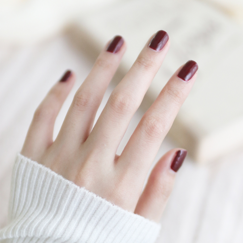 大部分紅色系指甲油都有能校正偏黃肌膚的效果,當中以酒紅色為公認最顯白顏色,無論年輕或成熟同樣好看。(色號參考 : N319)