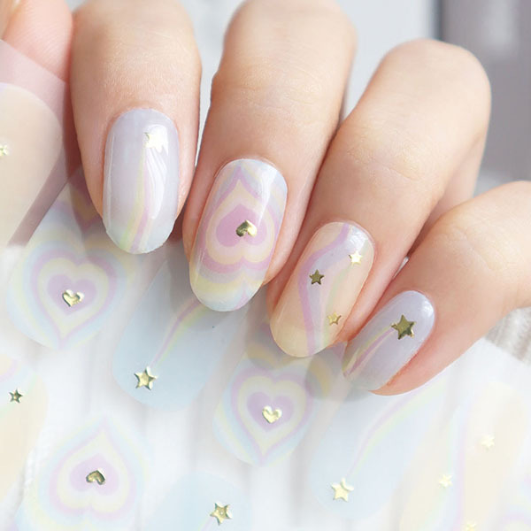 指甲貼是微透明質感,每個人的指甲顏色/膚色不一樣,上手效果會有區別,