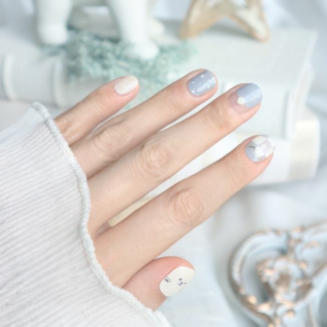 指甲貼是微透明質感,每個人的指甲顏色/膚色不一樣,上手效果會有區別,