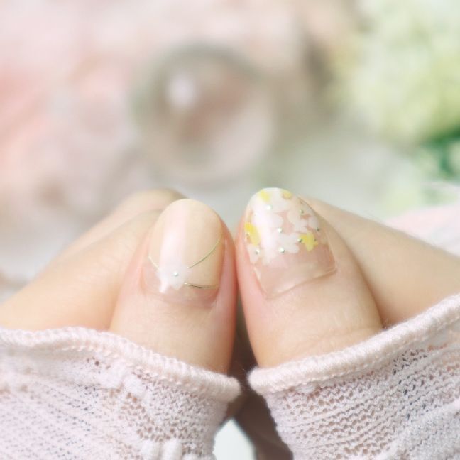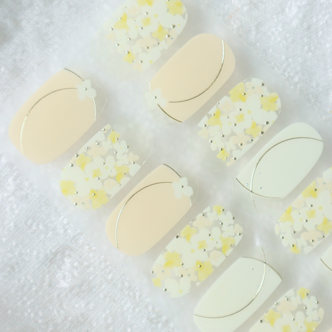 指甲貼是微透明質感,每個人的指甲顏色/膚色不一樣,上手效果會有區別,